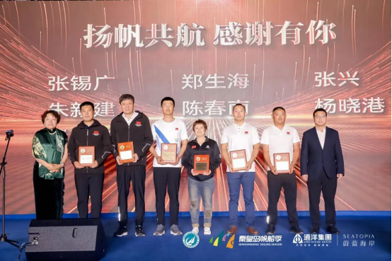 隨后,晚會致謝了為支持國家帆船帆板隊備戰(zhàn)奧運做出突出貢獻的個人——張錫廣、朱新建、楊毅光、鄭生海、陳春南、張興、楊曉港。國家帆船帆板隊的每一次飛躍都閃爍著他們的智慧和汗水,他們默默無聞、無私奉獻,是中國帆船軍團輝煌背后的強大脊梁。