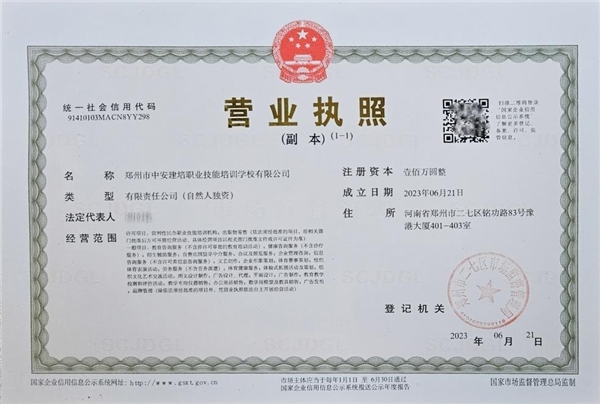 鄭州市中安建培職業(yè)技能培訓學校由河南中安全資控股,屬營利性民辦職業(yè)技能培訓機構。河南中安作為鄭州市二七區(qū)招商引資重點項目和河南省“三個一批”活動簽約重點項目,在招商引資之初已確立了專注職教領域的職業(yè)資格證書考試培訓和企業(yè)專業(yè)人才培養(yǎng)的發(fā)展路徑,致力于助力用戶實現(xiàn)職業(yè)夢想,幫助企業(yè)提高員工專業(yè)素養(yǎng)。