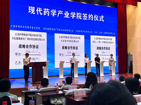 會上,全億健康淮安分部與江蘇護理職業(yè)學(xué)院中醫(yī)藥學(xué)院簽署戰(zhàn)略合作協(xié)議,攜手共建現(xiàn)代藥學(xué)產(chǎn)業(yè)學(xué)院。