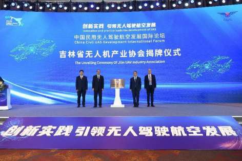 在論壇開幕式上,與會領(lǐng)導(dǎo)與嘉賓向無人駕駛航空第二批試驗區(qū)授牌,為吉林省無人機產(chǎn)業(yè)協(xié)會揭牌,并共同證簽了長春市航空產(chǎn)業(yè)園項目。