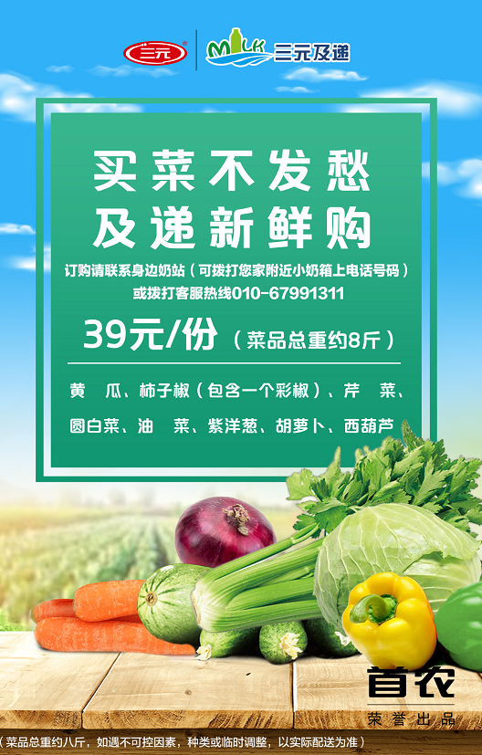 送菜服務(wù)是奶站為解決居民買菜困難而啟動(dòng)的短期業(yè)務(wù)。不光是訂奶戶,奶站服務(wù)覆蓋的小區(qū)居民只要有需求,都可以選擇訂菜。居民訂購可撥打自家附近小奶箱上的電話號碼與周邊奶站聯(lián)系,或撥打客服熱線010-67991311進(jìn)行預(yù)訂。