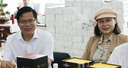 評(píng)委胡樹萌(左)、評(píng)委張文祥(右)在評(píng)審會(huì)上品鑒申獎(jiǎng)產(chǎn)品