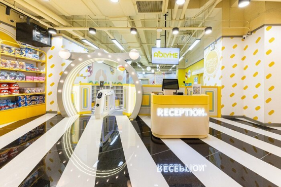 店面依舊是以黃色為主色調,但色調整體變?yōu)楦尤岷?、低飽和度的杏仁餅干黃,運用夢幻而童真的馬卡龍色系,打造輕奢活力的風格,搭配出時尚的景點,富有想象力且充滿包容性,就像一個溫暖的“家”,驅散顧客心頭的陰霾。