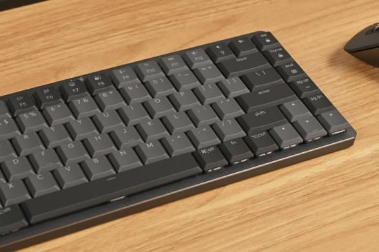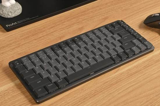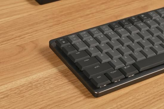 首先是大家最好奇的一點:它憑什么沒有聲音?羅技MX Mechanical系列采用的是機械矮軸,矮軸的好處就是在保留了機械鍵盤反饋感的同時,盡可能地減少噪音。在羅技官方支持的青紅茶軸內,你只要選擇了茶軸和紅軸,打字時的噪聲都是在一個非??煽氐姆秶鷥鹊摹]o以弧面雙色鍵帽和鋁制金屬磨砂面板,質感很突出,商務感拉滿。