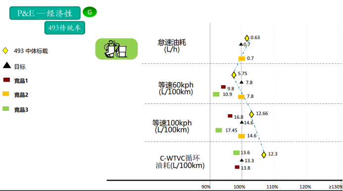 當車輛怠速時,發(fā)動機的轉速僅600轉,在省油的同時,又進一步降低了發(fā)動機噪音,百公里油耗較同類機型油耗低5%以上。它的額定功率點燃油消耗率為215 g/(kW·h),在WTVC綜合油耗及等速油耗均優(yōu)于競品。