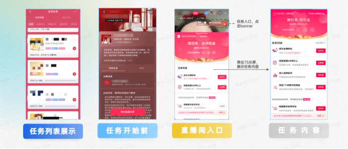 在直播間新品上市場景中,“看播任務(wù)”能夠充分調(diào)動UGC互動,提升直播間熱度和生意,是品牌直播“利器”。品牌可以運用看播任務(wù),以完成任務(wù)獲得現(xiàn)金獎勵的方式,激勵用戶主動停留在直播間內(nèi)進行關(guān)注、評論、入會、瀏覽商品等行為,促進直播間各項互動指標(biāo)優(yōu)化,助力直播間新品上市聲勢和交易轉(zhuǎn)化。