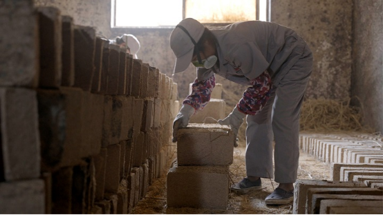 如今,經(jīng)過一代代四特制曲人的努力,《天工開物》里的制曲工藝得以傳承與發(fā)展,形成了自成一派的特香型大曲酒工藝:以面粉、麥麩、酒糟按一定比例混拌、壓制成型,而后經(jīng)過長(zhǎng)霉、晾霉、潮火、大火、后火五個(gè)培曲階段以及三次人工翻曲,最終入庫(kù)貯存3-6個(gè)月,形成特殊的曲香味。