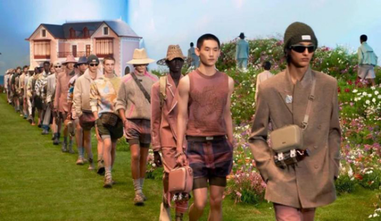 而轉(zhuǎn)換到我們?nèi)粘I钪械拇┲鴪?chǎng)景,豐富的色彩的確比多數(shù)人舒適圈里的黑白灰更加挑人,但穿對(duì)也著實(shí)出彩。在當(dāng)季的23春夏時(shí)裝周,也有很多奢侈品大牌和設(shè)計(jì)師品牌給出了關(guān)于色彩的穿搭模板。例如,迪奧男裝的藝術(shù)總監(jiān)KIM JONES在23春夏系列中回溯了Christian Dior先生的「夢(mèng)中烏托邦」法國(guó)格蘭維爾花園,以及他本人鐘愛(ài)的查爾斯頓莊園。那些從自然景色中提取出來(lái)的柔和色彩,中和掉了男人鈍而硬的男性氣息,用粉紅色、淺藍(lán)色、淡紫色,將朝氣與活力和花園的草坪花朵融合得恰到好處。