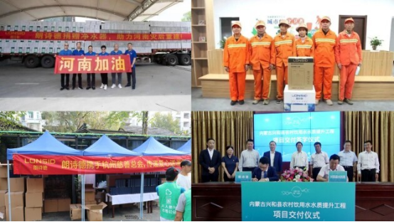 除了高考助力以外,朗詩德凈水器也曾積極參與過許多其他公益活動。2019年,朗詩德凈水器積極助力內(nèi)蒙凈水扶貧,憑借對復(fù)雜水質(zhì)的多年研究,為三千多戶水質(zhì)不達標的農(nóng)村人家,安裝上朗詩德L2凈水器,惠及農(nóng)戶上萬人;2020年,朗詩德為湖南省城步縣捐贈防疫物質(zhì);2021年7月,朗詩德公司在河南省發(fā)生特大暴雨后,幫助河南災(zāi)后重建,捐贈價值上千萬的朗詩德凈水器,助力河南災(zāi)后重建;同年9月,朗詩德凈水器通過莆田慈善總會、杭州慈善總會捐贈千盒愛心月餅,向醫(yī)護人員和一線勞動者送上這份獨屬于中秋的溫暖;2022年,朗詩德給北白象鎮(zhèn)勞動者環(huán)衛(wèi)驛站的工人們送去了一臺L3純水機以及GA406K-2管線機,有效解決了環(huán)衛(wèi)工人“喝水難”的問題,讓環(huán)衛(wèi)工人感受到社會的關(guān)愛和城市的溫暖。