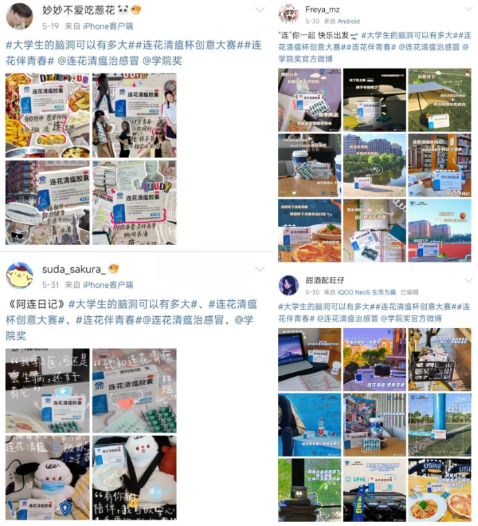 青年一代生生不息,青春力量強(qiáng)勢(shì)傳遞。在作品征集期間,參賽學(xué)子主動(dòng)以圖文形式在微博平臺(tái)、小紅書平臺(tái)上發(fā)布自己的創(chuàng)意作品、創(chuàng)作歷程、創(chuàng)意感悟等相關(guān)內(nèi)容,輸出年輕人的品牌觀念,展現(xiàn)新時(shí)代青年昂揚(yáng)的精神風(fēng)貌。