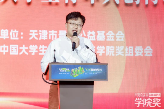悅康藥業(yè)股份有限公司創(chuàng)始人、董事長于偉仕先生致辭。悅康藥業(yè)成立于2001年,是以高端化學(xué)藥為主導(dǎo)的大型醫(yī)藥企業(yè)集團(tuán)、是以研發(fā)創(chuàng)新為驅(qū)動的國家級高新技術(shù)企業(yè)。悅康藥業(yè)致力于為百姓研發(fā)用的起的好藥,始終在堅(jiān)守“營造全球喜悅,關(guān)愛人類健康”的愿景下不斷前行。今年6月,悅康藥業(yè)首次牽手學(xué)院獎,通過青年共創(chuàng),促進(jìn)健康意識的傳遞,提升品牌傳播的廣度與深度,以及在年輕群體當(dāng)中的認(rèn)知度和美譽(yù)度;通過年輕人的創(chuàng)意,讓品牌更有生命力。悅康藥業(yè)將致力于品牌年輕化工程,在校企合作、產(chǎn)教融合領(lǐng)域作出更多探索。