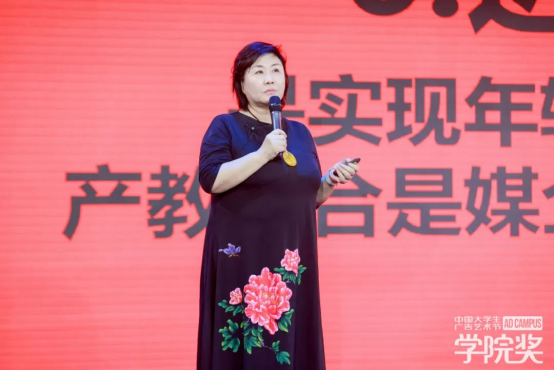 廣告人文化集團(tuán)總裁穆虹女士發(fā)表致辭演講。她表示,廣告人文化集團(tuán)不斷創(chuàng)新發(fā)展,聚合產(chǎn)業(yè)力量,打造廣告業(yè)新生態(tài),為校企搭建“鵲橋”,助力品牌強(qiáng)大,做品牌年輕化的引領(lǐng)者。關(guān)于大力探索產(chǎn)教融合新模式,穆虹女士提出看法:“先對接,再融合”。課程改革對接產(chǎn)業(yè)需求、對接專業(yè)崗位,從專業(yè)建設(shè)抓起,實(shí)現(xiàn)產(chǎn)教共贏。期待未來與企業(yè)、高校共同攜手為中國廣告事業(yè)的發(fā)展,為中國廣告教育的發(fā)展作出貢獻(xiàn)。