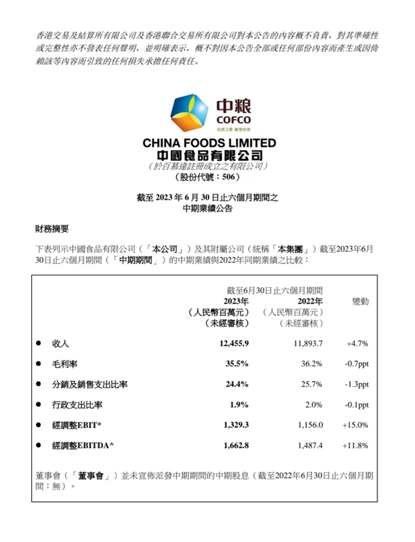 展望未來,中國食品表示,隨著各類積極政策信號(hào)不斷釋放,經(jīng)濟(jì)持續(xù)回升向好、消費(fèi)復(fù)蘇,以及高質(zhì)量發(fā)展的趨勢(shì)更加顯著,公司對(duì)2023全年收入及利潤實(shí)現(xiàn)穩(wěn)健增長仍然充滿信心,公司將持續(xù)積極推動(dòng)產(chǎn)品結(jié)構(gòu)升級(jí)、業(yè)務(wù)組合優(yōu)化、供應(yīng)鏈整合等重點(diǎn)戰(zhàn)略,促進(jìn)預(yù)期業(yè)績保持平穩(wěn)發(fā)展。